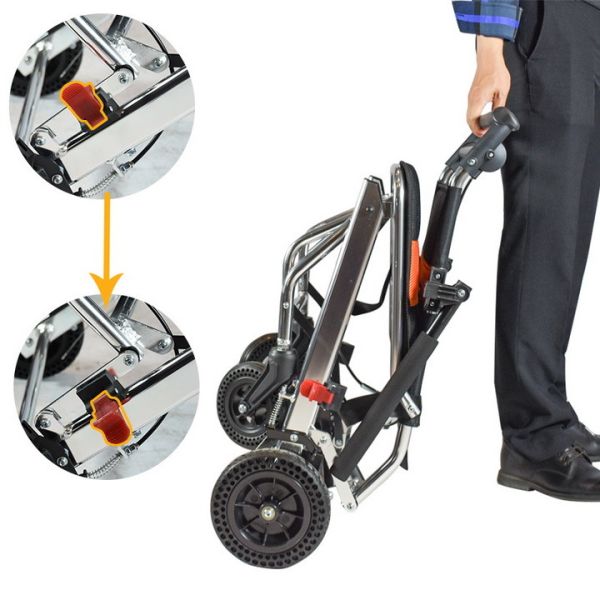 Lightweight wheelchair with foldable structure is welded and formed by aluminum alloy tubes. The surface is oxidized, fashionable and beautiful; Double safety buckle design, stable and reliable. Small folding volume, easy to carry.